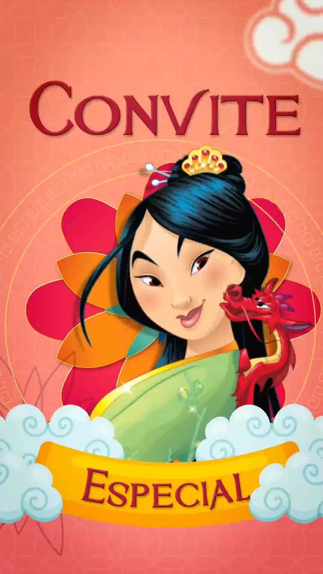 Convite Animado Aniversário Aventura da Mulan
