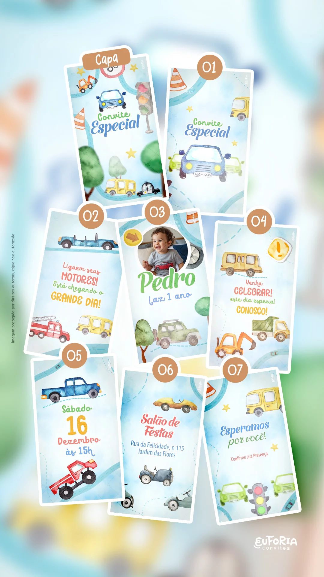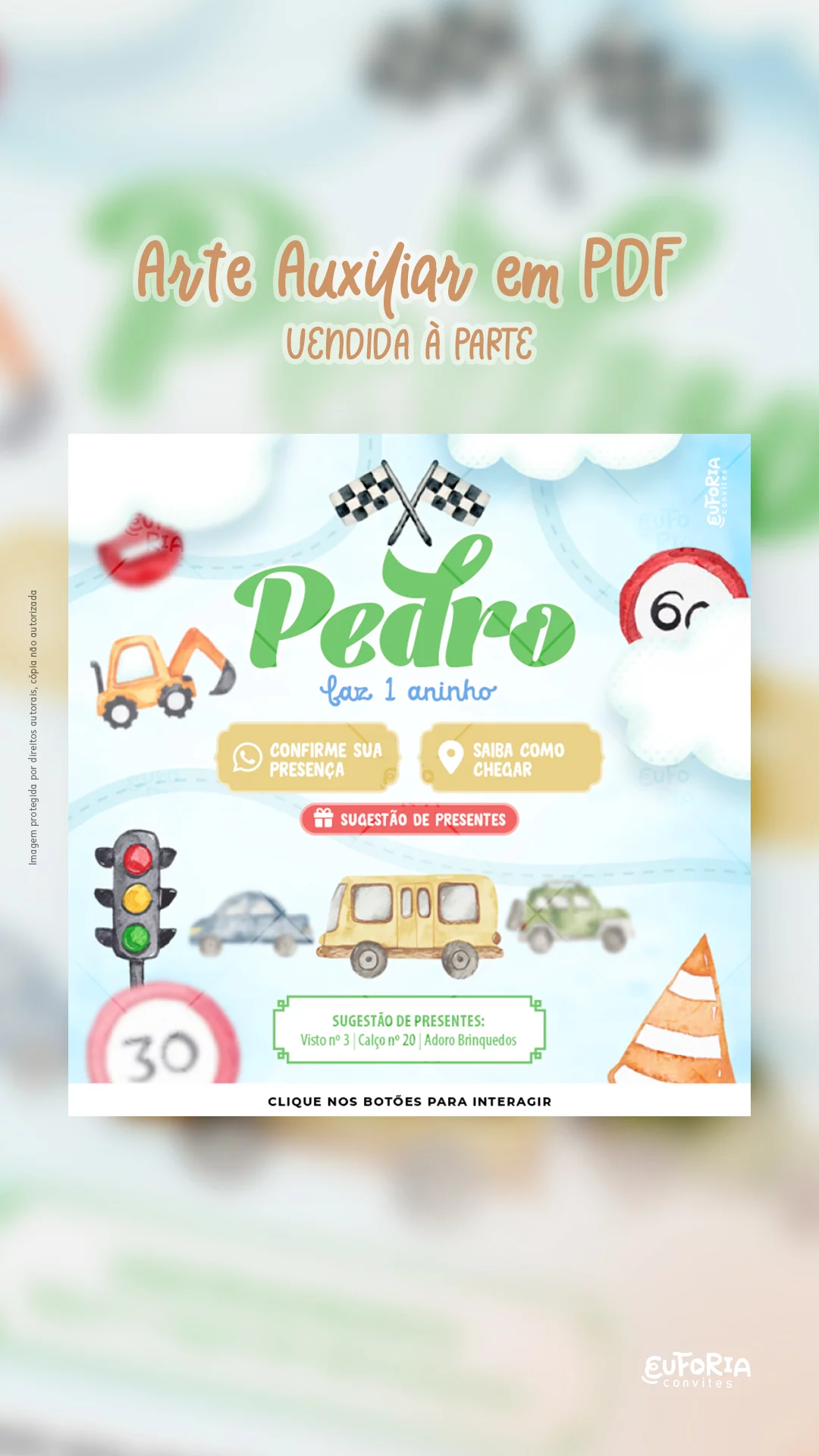 Seja o primeiro a avaliar “Convite Animado Aniversário Brincando de Carrinhos”