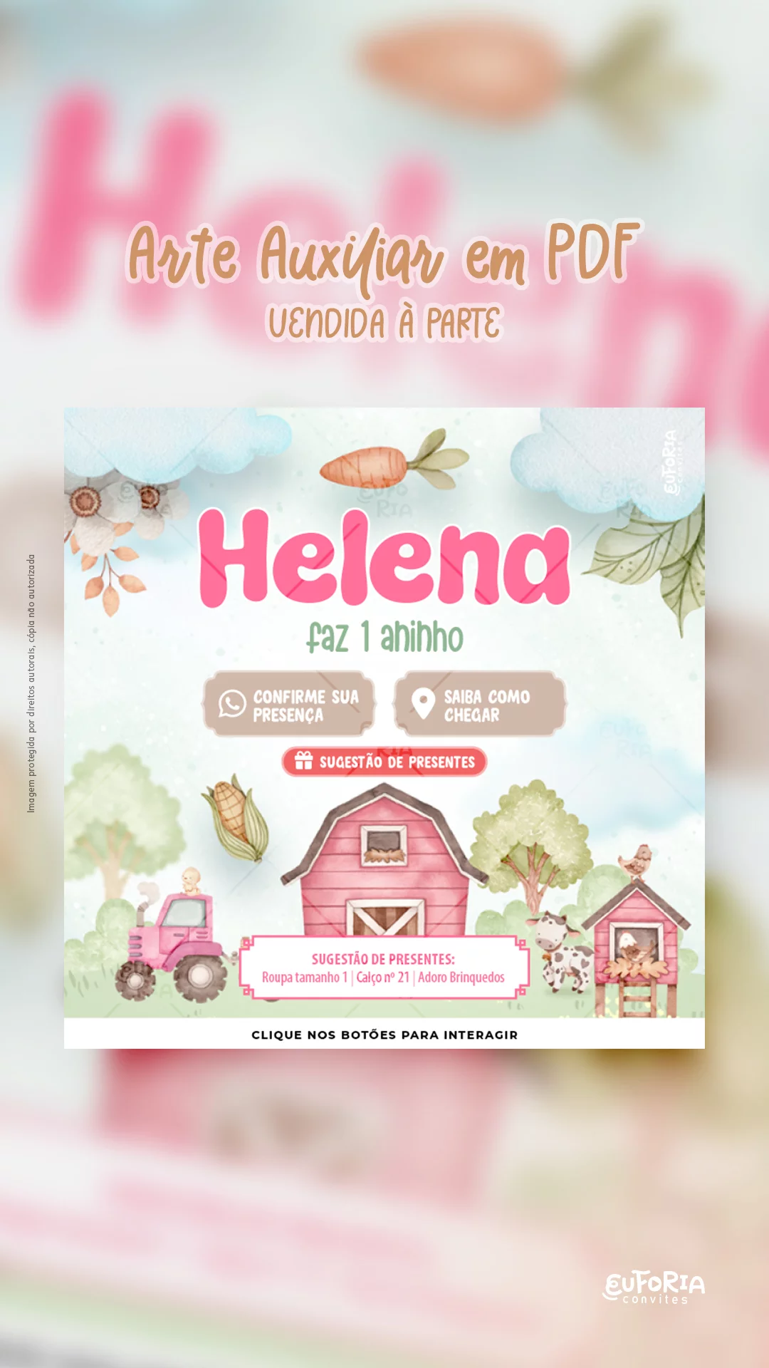 • O vídeo tem botões interativos e/ou sugestões de presentes? Não. Essa opção está disponível apenas na arte auxiliar em PDF.