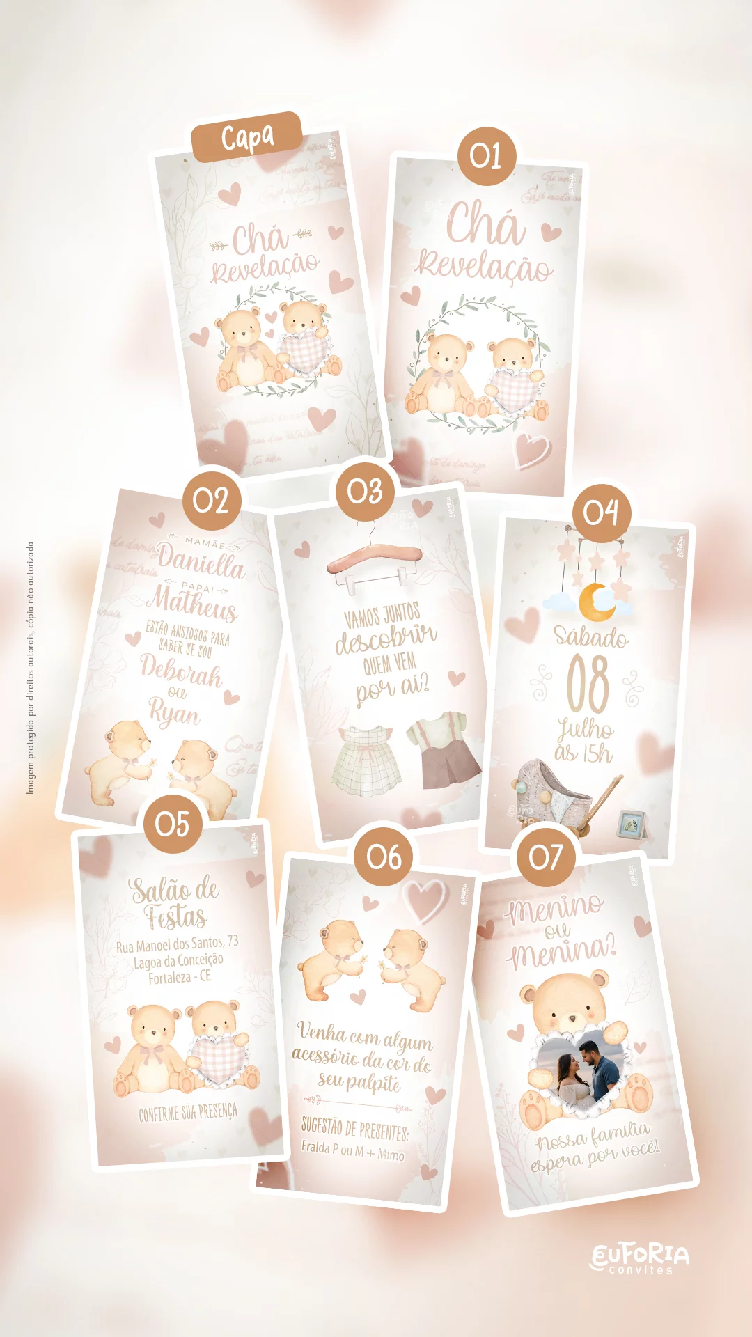 Convite Animado Chá Revelação Quartinho dos Ursos (Creme) [link]